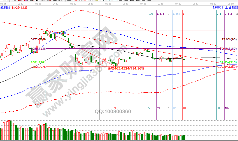 2966是近期一直強(qiáng)調(diào)的反彈重要阻力位,30號(hào)上攻到2965.6(精準(zhǔn)無誤差)后如期受阻回落,再次彰顯江恩對(duì)價(jià)格點(diǎn)位的精準(zhǔn)計(jì)算。按照規(guī)則壓力位下逢高兌現(xiàn)不開新倉(cāng),等待8月1日時(shí)間窗口。1號(hào)時(shí)間窗,指數(shù)失收生命線,趨勢(shì)再度轉(zhuǎn)弱。8月2號(hào)盤中壓力是135度2911點(diǎn)、180度2928點(diǎn),盤中支撐是90度2894點(diǎn)、45度2877點(diǎn)。操作策略,指數(shù)失守日線生命線,失守60分鐘生命線,穩(wěn)健者繼續(xù)休息,等待新的交易信號(hào)出現(xiàn)。整體倉(cāng)位控制在3成內(nèi)。