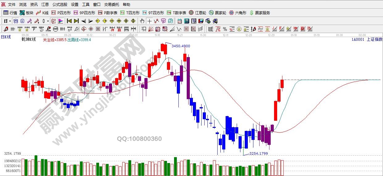 ★依據(jù)贏家江恩理論系統(tǒng)乾坤K線提示:紅色關(guān)注線之上,出現(xiàn)紅色k線,依據(jù)規(guī)則,趨勢(shì)多頭。