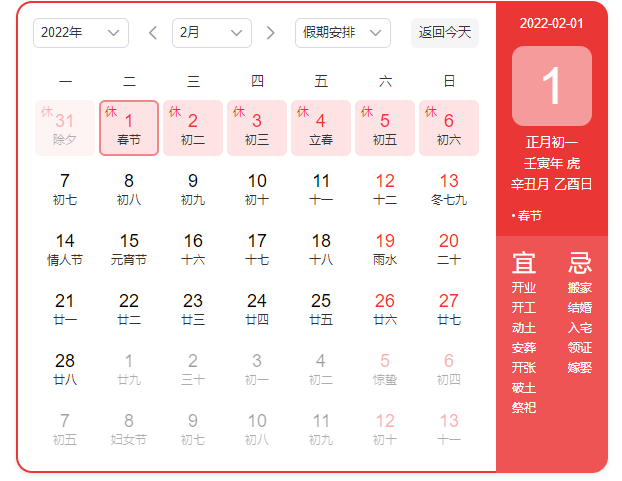 根據(jù)國務(wù)院辦公廳發(fā)布的有關(guān)通知,結(jié)合贏家財富網(wǎng)的實際運營情況,現(xiàn)將贏家財富網(wǎng)春節(jié)放假時間具體安排如下:1月31日-2月6日春節(jié)放假7天,2月7日(星期一,初七)起正常上班。由此給您帶來的不便,敬請諒解!