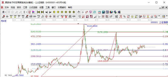思路5:用歷史極限關(guān)鍵位95至6124、1849至5178做圖。前者0.5倍位置3109,后者0.618位置3121,空間點(diǎn)位相似。