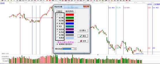 7.工具編輯。把鼠標移動到所選起點的位置,鼠標會變成十字狀,點擊右鍵-編輯黃金時間延伸線,出現(xiàn)如下圖,可根據(jù)自己的經(jīng)驗需求,留下你認為重要的分割位,點擊確定即可。經(jīng)常用的設(shè)為默認。