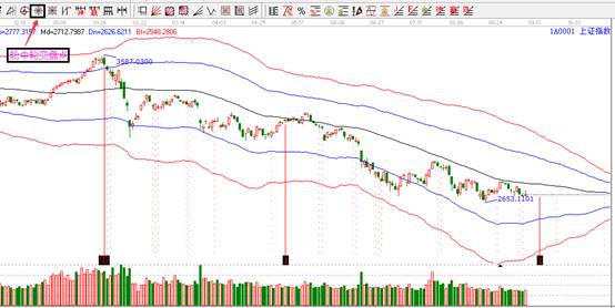 (三)實戰(zhàn)作用:依據(jù)工具所得出的豎線即為時間窗口,據(jù)此可提前預(yù)測指數(shù)和股價的上漲或下跌的時間周期,判斷可能發(fā)生趨勢反轉(zhuǎn)的時間轉(zhuǎn)折點。